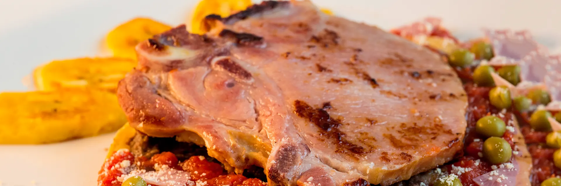 ¿Se te antoja algo más que una tostada? ¿Qué tal una deliciosa chuleta ahumada sobre tostadas? Con salsa, frijolitos, jamón, plátano macho y lo que se te ocurra… ¡Delicioso!