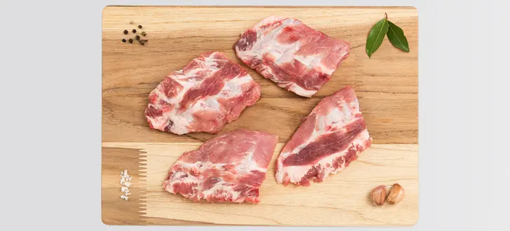 Las costillas provienen del pecho del cerdo. Son conocidas por su sabor delicioso. A pesar de que solo tienen una capa ligera de carne, tienen mucho sabor.
